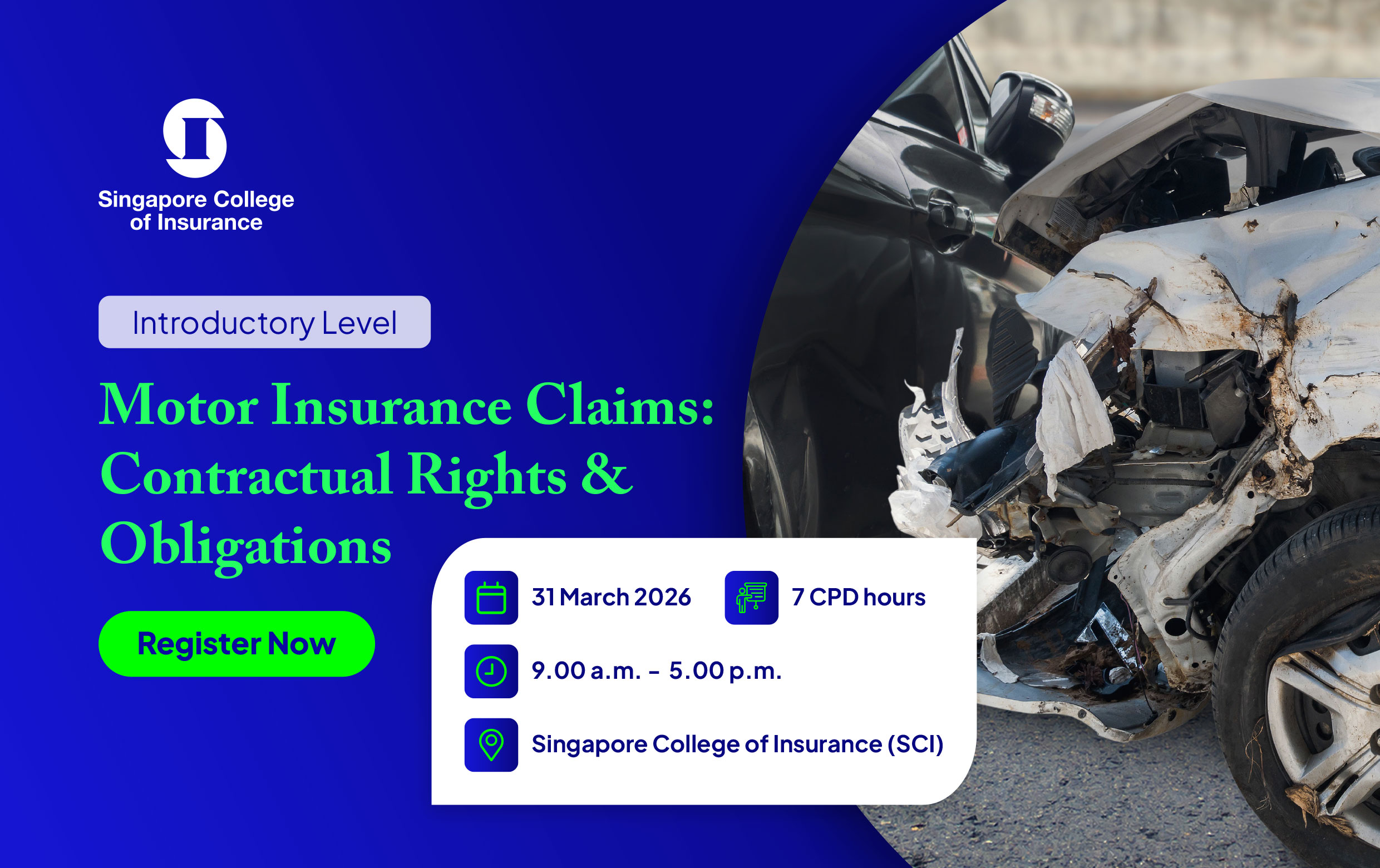 This 1-day programme will provide participants with the necessary knowledge to effectively manage the Motor Insurance claims process. Participants will also learn about the information required to support the claim decision-making process.